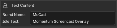 Editable text that appears beside the icon (e.g., “MoCast”, your YouTube channel, or your studio name).