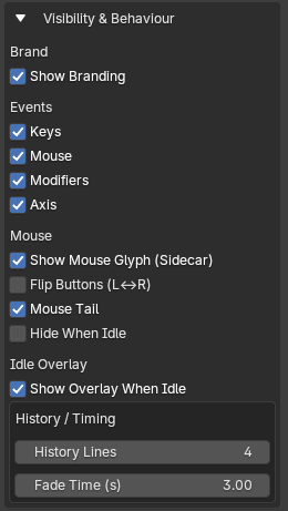 MoCast displays keystrokes, mouse events, modifier keys, transform axes, and optional branding—all presented in a clean, customizable UI that adapts to your personal or studio style.